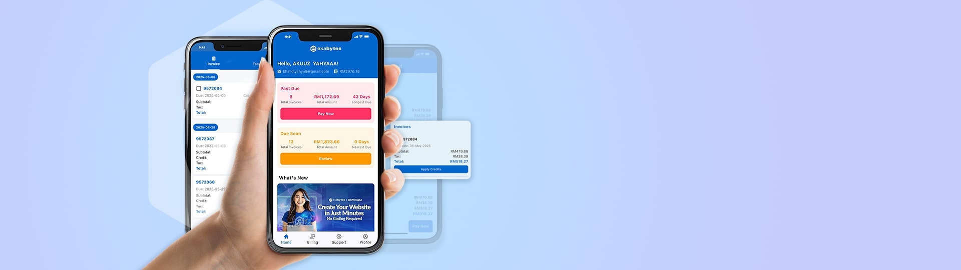 Never experienced service disruption again due to late payment with our mobile app reminders, which help you keep track of all active and upcoming invoices in order to keep your digital asset online 24/7/365.
